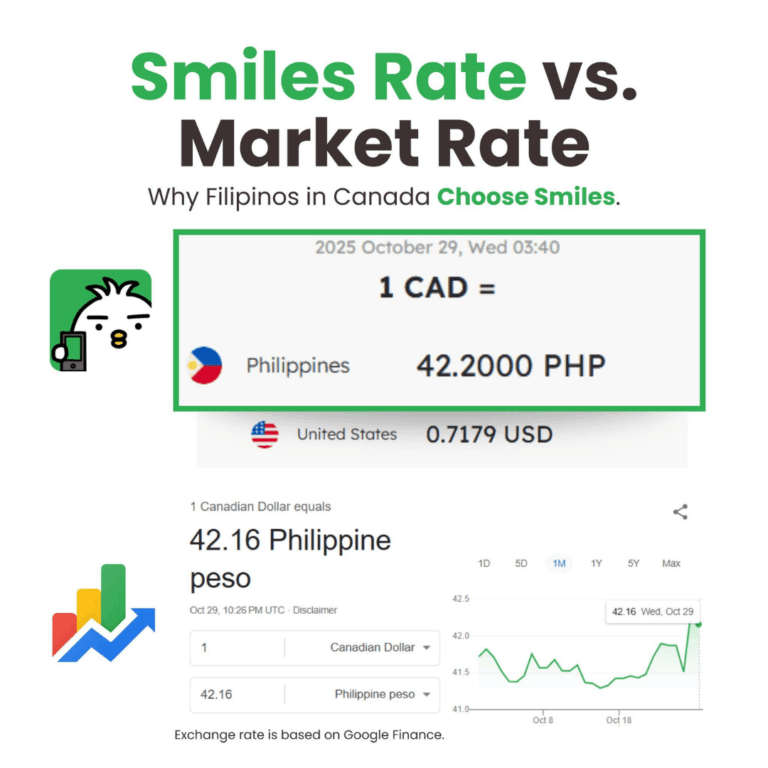 One notable highlight, Smiles Mobile Remittance offered one of the highest CAD to PHP exchange rates of 42.20 as of 06:45 P.M. EST, October 29, 2025 while market average at the same time: 42.16 CAD to PHP.