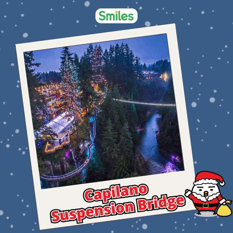 Mùa Giáng sinh, cầu treo Capilano – biểu tượng du lịch Vancouver – được trang hoàng bằng hàng ngàn ánh đèn lấp lánh. Đi bộ trên cầu treo giữa rừng thông phát sáng, kết hợp khu Treetops Adventure lung linh, tạo nên trải nghiệm Noel cực kỳ ấn tượng.