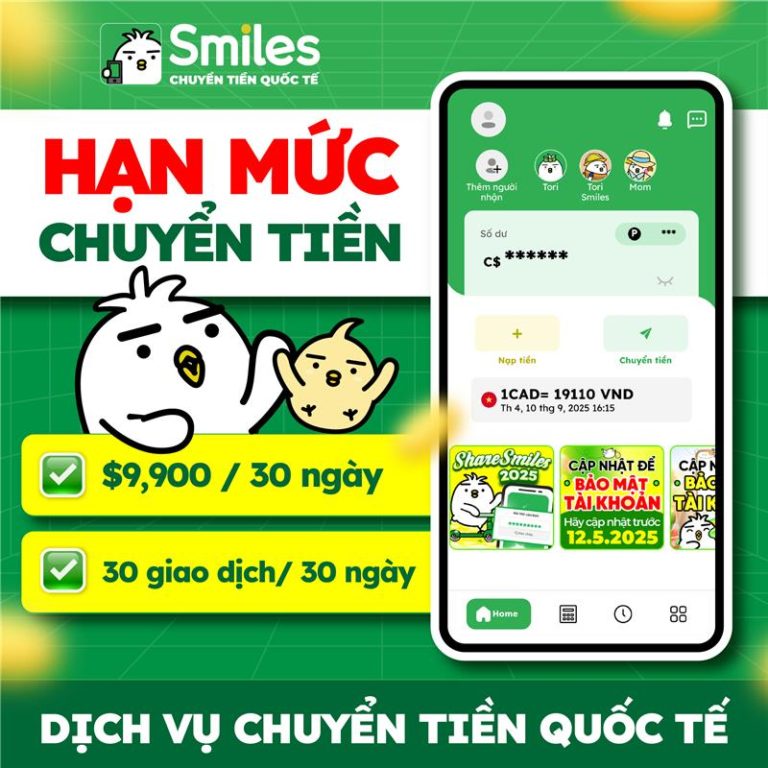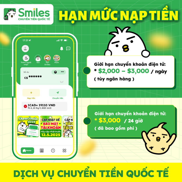Việc hiểu rõ hạn mức nạp tiền và hạn mức chuyển tiền Smiles Canada – Việt Nam sẽ giúp bạn chủ động hơn trong kế hoạch tài chính và tránh những gián đoạn không cần thiết khi gửi tiền về cho gia đình.