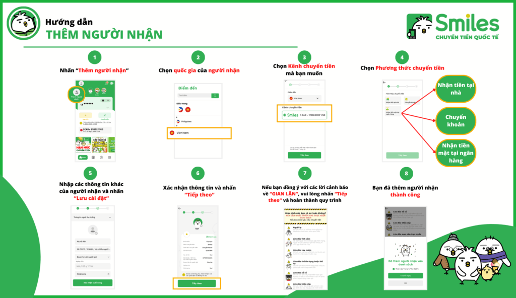 HƯỚNG DẪN THÊM NGƯỜI NHẬN TRÊN ỨNG DỤNG SMILES
