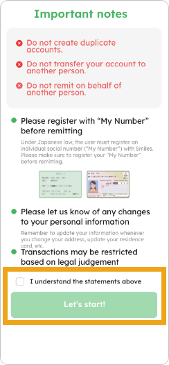 3. Check the “I understand the statements above” box and tap “Let’s start!”