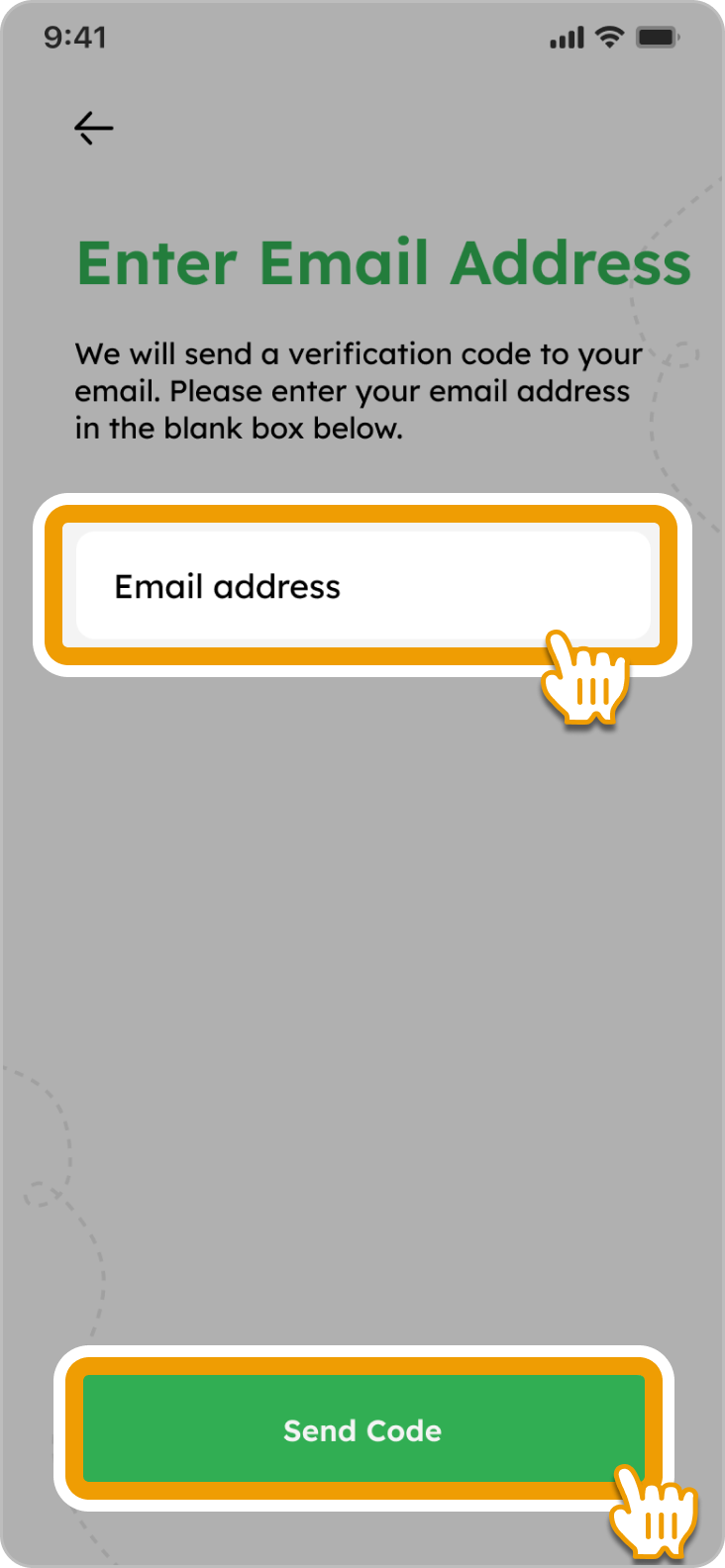 2. Enter your email address and tap “Send Code”