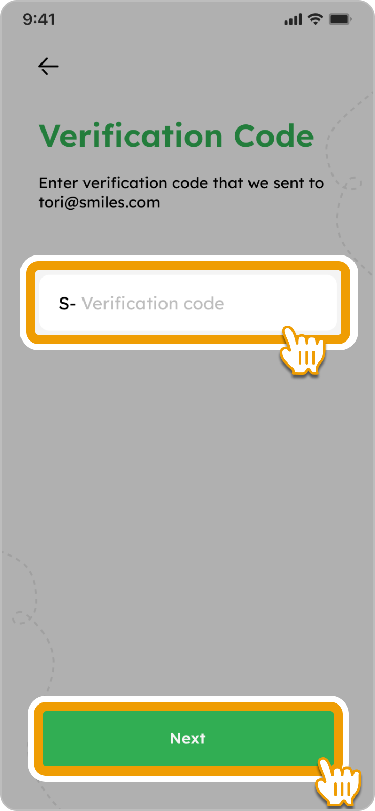 3. Check your email inbox, input the verification code, and tap “Next” to proceed