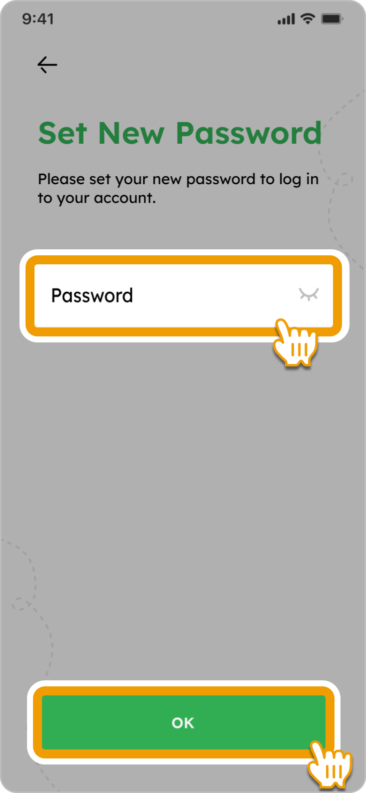 4. Enter your new password and tap ”OK”