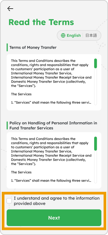 2. Check the “I understand and agree to the information provided above” box and tap “Next”