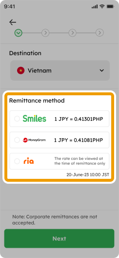 4. 受取方法を選択し、必要事項を入力/選択してください。