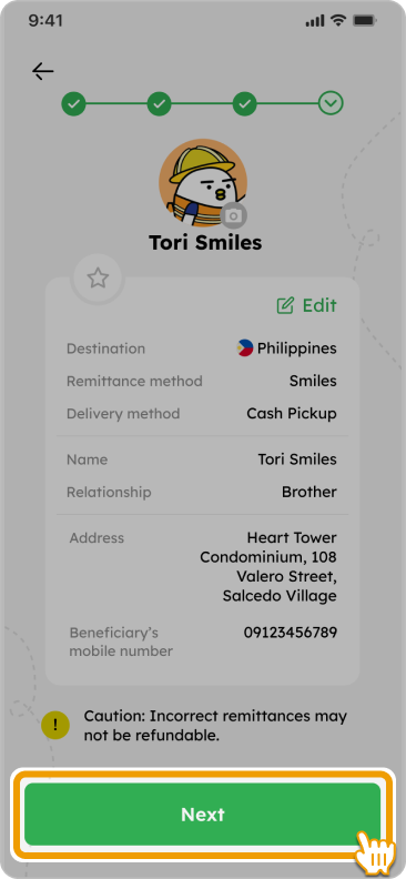 8. 受取人の追加ができました! オプションで、チェックボックスにチェックを入れると、ホーム画面に受取人を追加できます!
