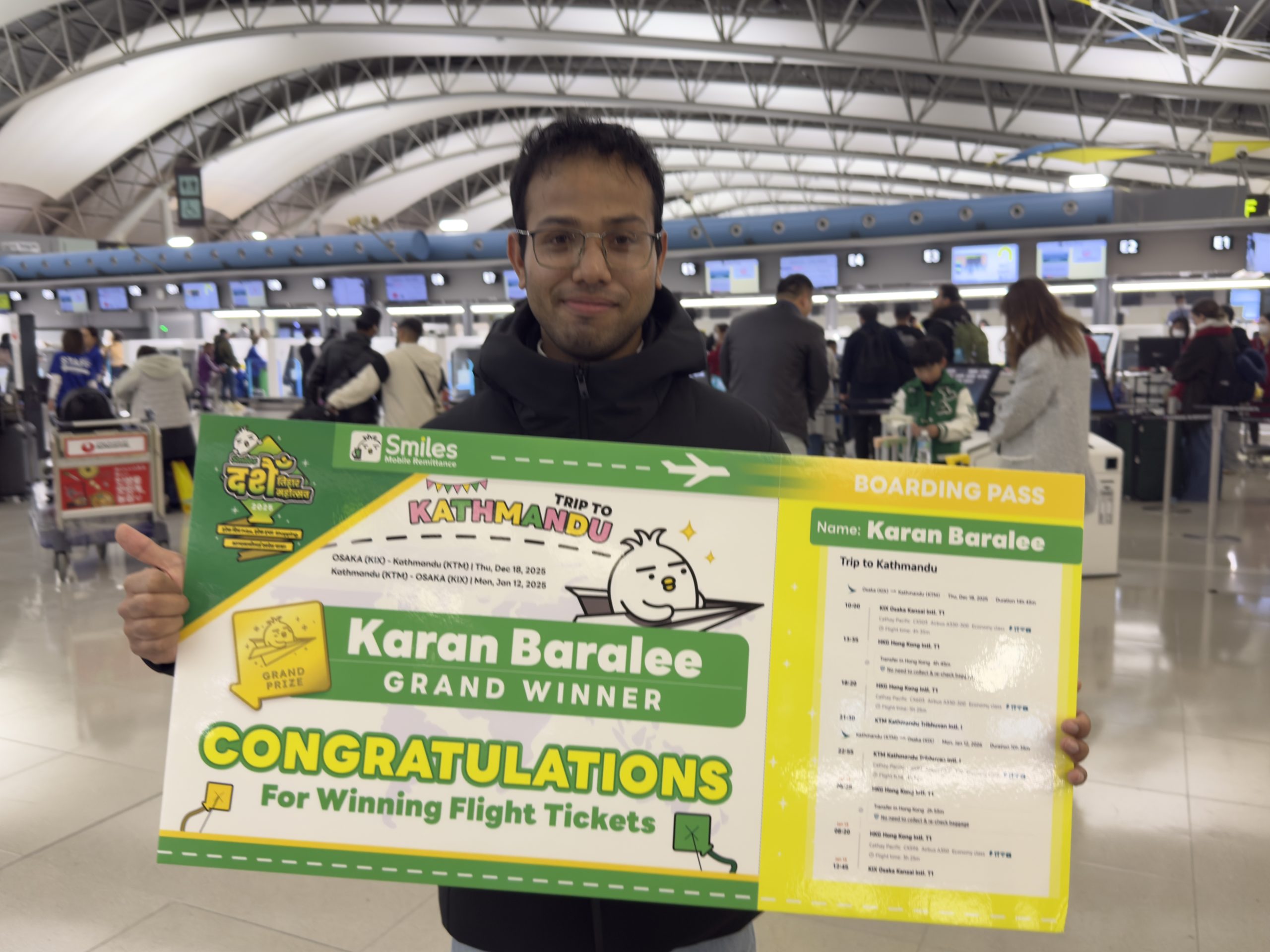- The grand prize: We are overjoyed for our Grand Prize winner, who has won a round-trip flight ticket between Japan and Nepal. We can’t wait to help them reunite with their family.
