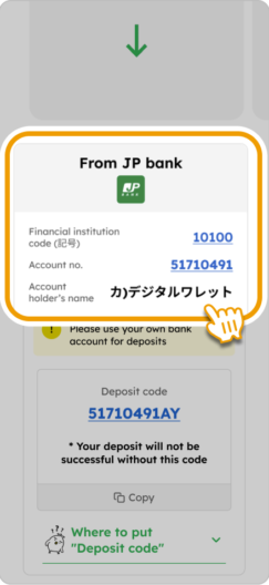 2. Vui lòng nhập ‘Mã nạp tiền’ của bạn vào phần ‘依頼人名 (Irai-nin-mei)’ trên màn hình Yucho *Xin vui lòng giữ lại hóa đơn nạp tiền hoặc màn hình chuyển khoản thành công của bạn.