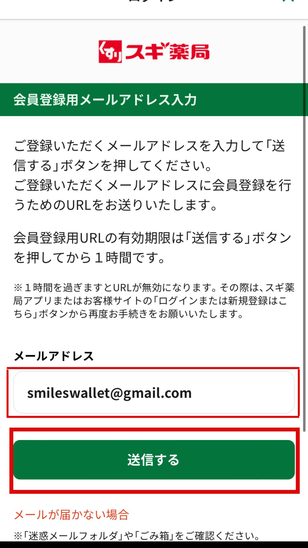 Bước 2: Nhập địa chỉ email và ấn nút [送信]