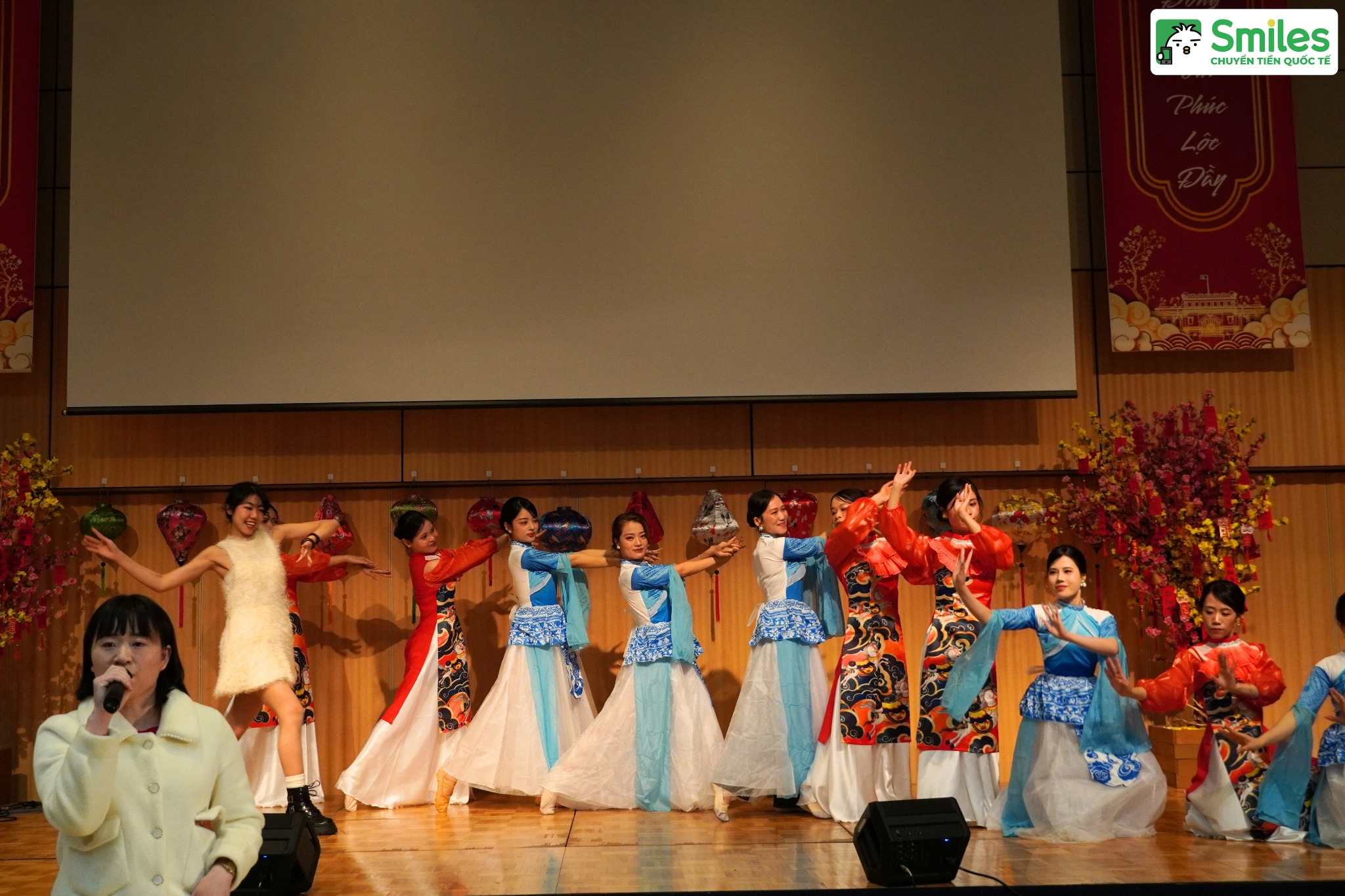 Một trong những điểm nhấn đặc biệt của chương trình chính là các tiết mục ca múa nhạc đậm sắc màu văn hóa Việt Nam. Những giai điệu quen thuộc, những tà áo dài thướt tha trên sân khấu đã tái hiện trọn vẹn không khí xuân quê nhà giữa lòng Tokyo.