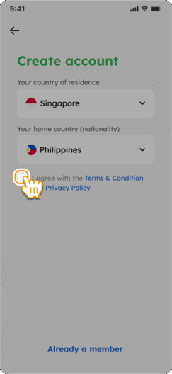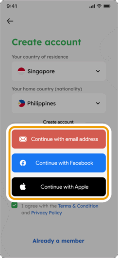 6. Tap on box to check off that you agree and choose your preferred way to create account