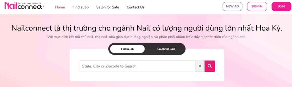 Web NailConnect là nền tảng chuyên biệt cho ngành nail tại Mỹ, hỗ trợ tìm việc và tuyển dụng một cách chuyên nghiệp.